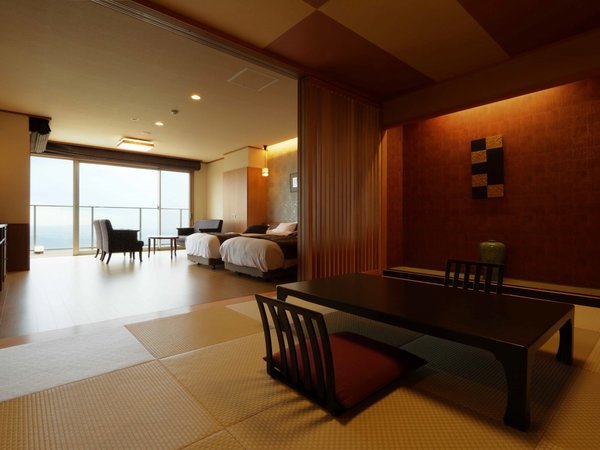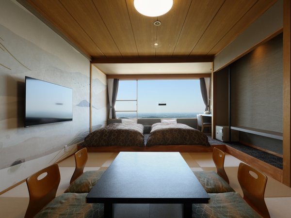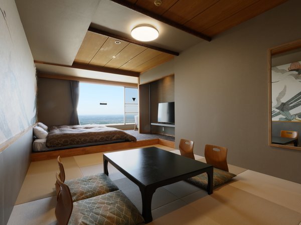 【露天風呂付客室(陶器風)】/眼下に筑...