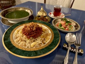 エジプト伝統料理コシャリ・モロヘイヤスープ