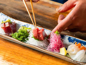 ご夕食に伊勢海老のお造りが付く豪華料理プランです。当館板長の厳選素材を使用したおまかせ会席料理をご堪能くださいませ。海に近い町ならではの旬の食材を使用し、一品一品心をこめてお作り致します。常連様に大変人気のお料理プランでございます。