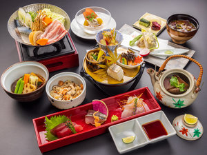 当館では、夕食・朝食ともに、伊豆の幸をふんだんに盛り込んだ「季節の会席料理」