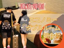【連泊割引】2連泊以上のご予約【エコノミーダブル・ベット横幅140】朝食付【本厚木駅徒歩1分】C7