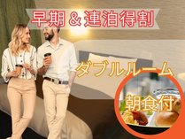 【連泊割引】2連泊以上のご予約【ダブル・ベット横幅170】朝食付【本厚木駅徒歩1分】C7