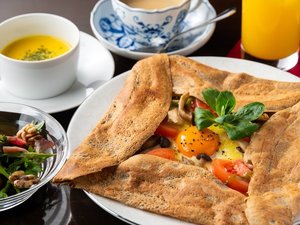 朝食は焼きたてのガレットを中心とした内容をお楽しみください。