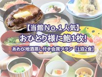 【館内No.1人気】おひとり様に鮑1枚!地酒蒸し付き会席プラン/美肌の湯[1泊2食]