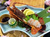 【二食付90分飲み放題】伊勢海老お造りが付く!鮑とキノコのバターステーキハーフ会席と四季彩バイキング