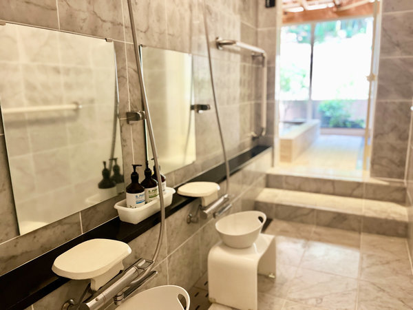【貸切露天風呂2】大理石の洗い場とひろ...