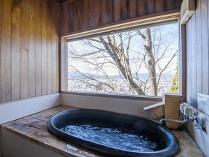 半露天風呂の窓を開けると高山の町並みや遠くの山々を望み、