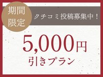 【滞在レビュー大歓迎】期間限定で食事なしプランが1室5000円OFF<素泊まり>