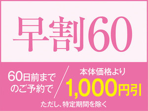 ご宿泊予定日より60日以上前のご予約で1000円引