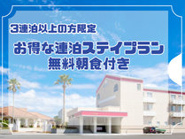 【3連泊以上の方限定】お得な連泊ステイプラン 無料朝食付き