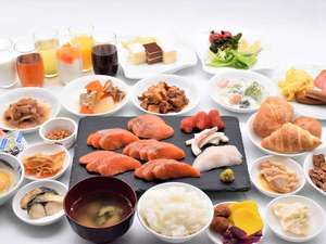 港町留萌市の旬の食材を用いた、海鮮含む約30種類の朝食バイキング