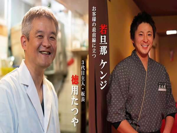 左:3代目主人兼板長 徳用たつや、右:若...