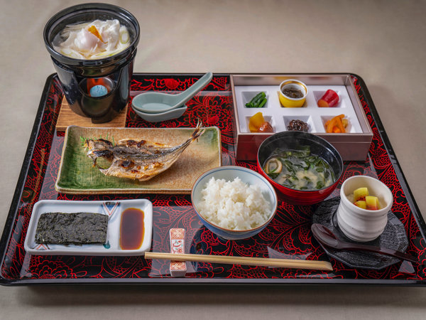 【朝食】法悦オリジナルの焼きたての鯵の...