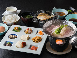温泉湯豆腐豚しゃぶ/朝食一例