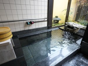 黒御影石で作ったお風呂があり、24時間いつでもお好きな時にご利用いただけます。