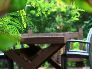 キッチン付きリビング、広いウッドデッキ付きのプライベートコテージ