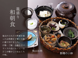 朝食:《籠盛り和朝食》をお食事処で(全席禁煙)