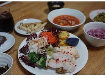 大皿に盛り付けた料理を皆様取り分けてお召し上がり頂きます。写真は取り分けた状態です。