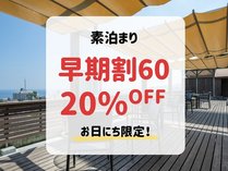 【早期割60・素泊まり】60日前まで&事前決済のご予約で20%OFF!