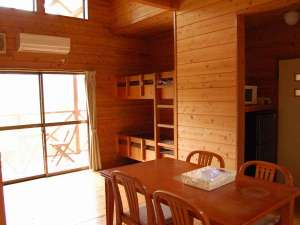 不二洞鍾乳洞のある川和自然公園と巨大吊り橋“上野スカイブリッジ”で結ばれた公園内にある山小屋風コテージ。ベランダからは眼下に開けた山並のすばらしい眺望が広がります。