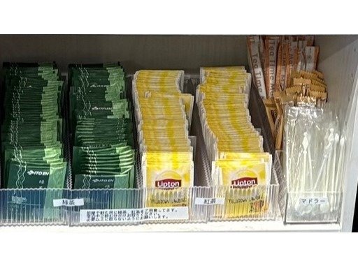 緑茶、紅茶、砂糖、ミルク、マドラー