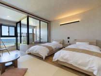海側和室ベッド、マッサージチェア、Refaシャワー&ドライヤー