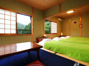 日本最古のロープウェーが見え、4.5+6畳の二間続きの和室。畳にローベッドでゆったりくつろいで頂けるお部屋です。