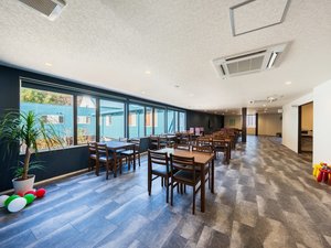 寒い冬でも安心!館内ラウンジでのお食事となります。