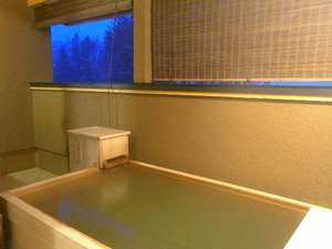 ○浴槽は木の香り漂う青ヒバの木風呂です。