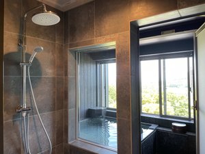 洋室10帖+琉球畳の和ベッドルーム6帖(半露天風呂+シャワーブース)