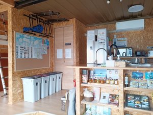 有料ですが簡単に食べられる冷凍食品、冷凍パン、島の柑橘ジャムや牛すじカレーなども、お米も炊飯器もあります。