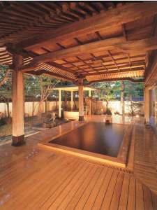 琥珀色のお湯は100%源泉掛け流し。大浴場には男女共に2つの露天風呂がございます。