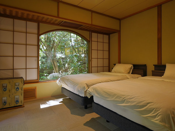 <松風>ツインベッドの半露天風呂付客室...