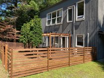 貸別荘A棟テラスBBQ、森の中で広いお部屋でのんびり