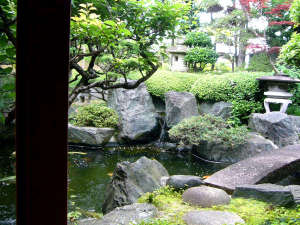 陽光がふりそそぎ色鮮やかな錦鯉の泳ぐ池に、青葉若葉の木々が緑影を落とす。心落ち着く日本庭園。