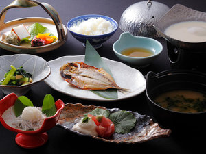 身体が元気になる湯宿の朝ごはん。焼き魚は3種類からお選び下さい。