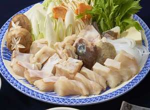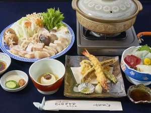 夕食はクエ鍋(クエ:お一人様200g)コースをご用意いたします。(足赤エビ付き)