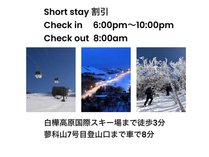 チェックイン | 20:00〜 | チェックアウト | 〜8:00 |