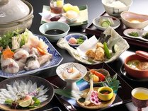 【ふぐフルコース】ふぐ刺身、ふぐちり鍋、ふぐ唐揚げなど極上の料理をお楽しみください。