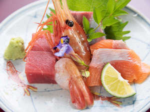 *グレードアップ会席一例。ニジマスや甘エビのお刺身