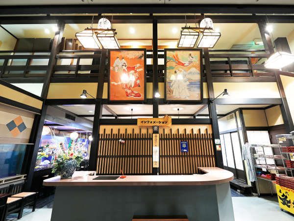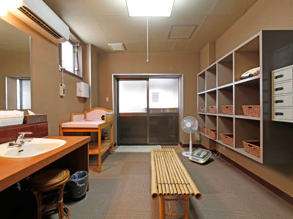 こじんまりした浴場の脱衣所(男女朝夕入...