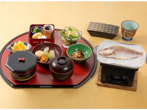 地域の色を感じる食材や郷土の味を取り入れた「阿波の和朝食」。 徳島のソウルフード「フィッシュカツ」や、近海で獲れた「ちりめんじゃこ」など、炊きたてのご飯が進む地産地消の品々を、キラキラと輝く海を眺めながらご提供します