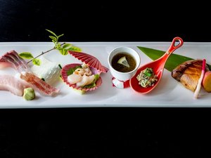 新鮮旬魚お造り 真珠貝貝柱粕漬け 鰤の照り焼き など