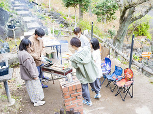 BBQ準備をする方はキッチンで事前準備、合流してからは屋外でBBQの火をつけ、お楽しみください!