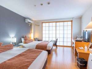 【エスプレッソ&ドリップマシン - カフィタリーシステム完備】ベッド2台のゆったりしたお部屋です。落ち着いた雰囲気の洋室でごゆっくりお過ごしください。