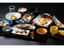 ゆの森【7・9〜10月限定】【ネット限定】お料理グレードアップ天然鮎の塩焼き+土佐黒牛陶板焼き付き花籠膳