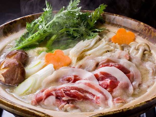 当館のぼたん鍋は薄切りのしし肉がお出汁...