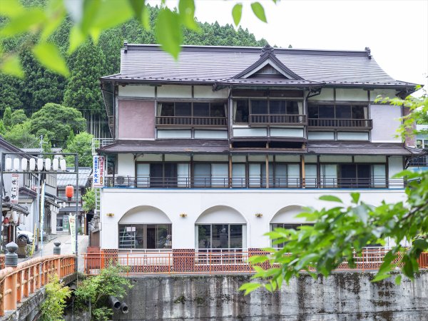 赤い橋のたもとにあるレトロなお屋敷旅館...